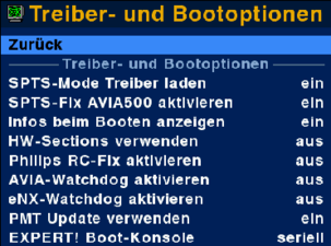 Neutrino:Einstellungen:Treiber- & Bootoptionen