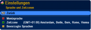 In diesem Menü kann gewünschte Sprache für die Bildschirm-, EPG- und Ton-Ausgabe sowie die Zeitzone von NeutrinoHD eingestellt werden.
