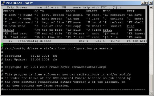 Es wird ein Hinweis der Editor-Hilfe angezeigt, --> You can get help by joe if you press 'Ctrl-K H'.