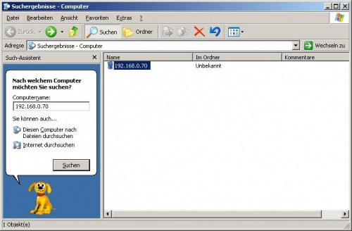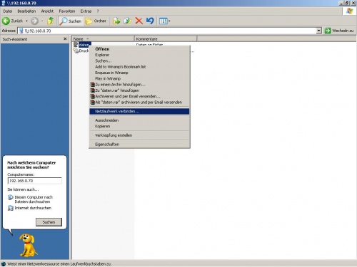 Nun können wir am Windows-PC auf unsere Freigabe zugreifen, im folgenden dargestellten Beispiel an einem Windows XP System.